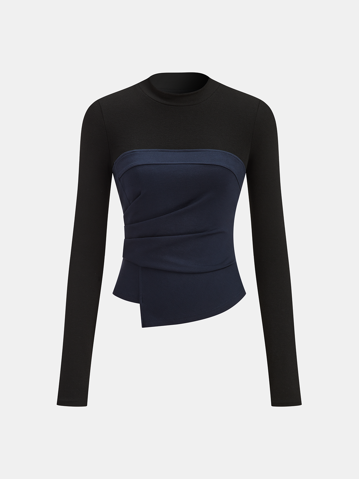 blouses,blue,casual,clothing,coll:blouses_shirts,coll:tops,color block,corpcore,fall,in_six_month,jersey,long sleeve,medium stretch,minegence,mock neck,no,not_low_sales,oa251030093,regular,regular fit,spring,tops,winter,women
