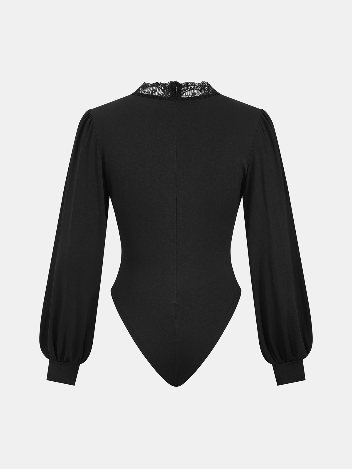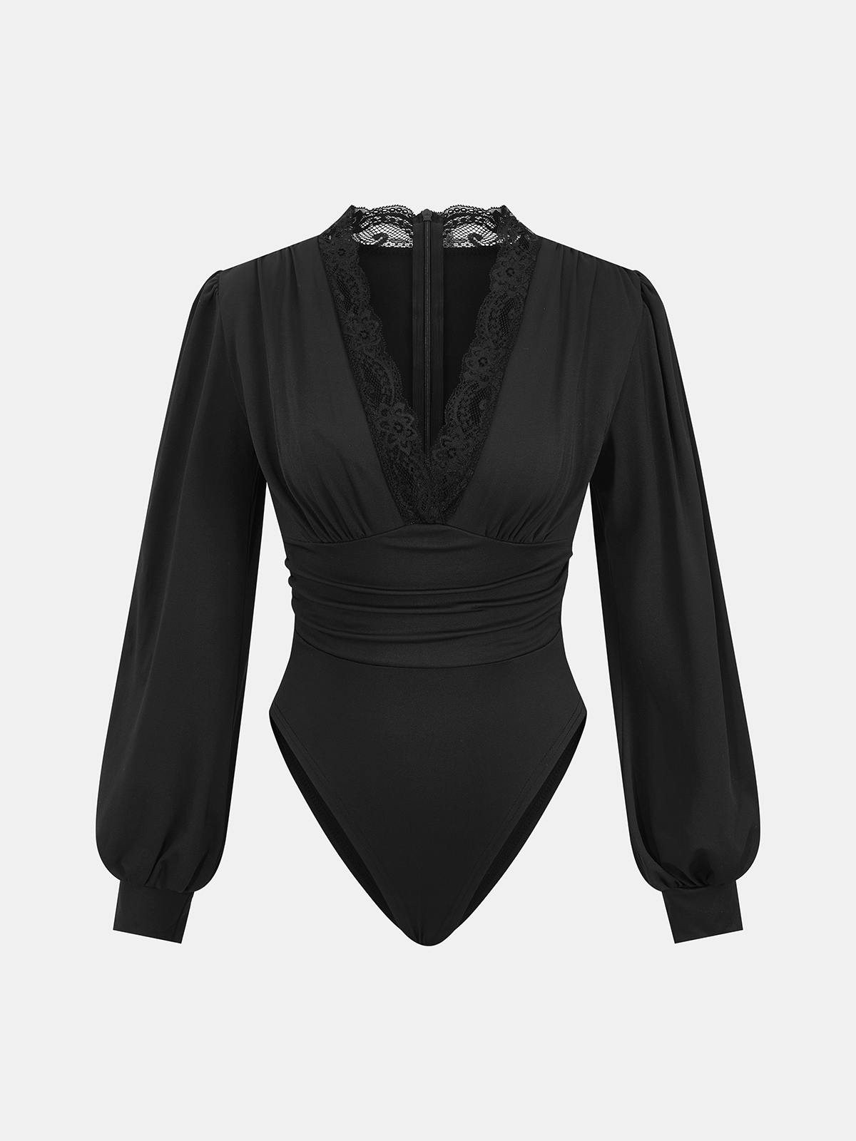 black,bodysuits,casual,clothing,coll:tops,date,in_six_month,invisible zipper,lace,lingerie,long sleeve,minegence,no,not_low_sales,oa251125032,regular,regular fit,slight stretch,tops,v-neck,women,woven fabric