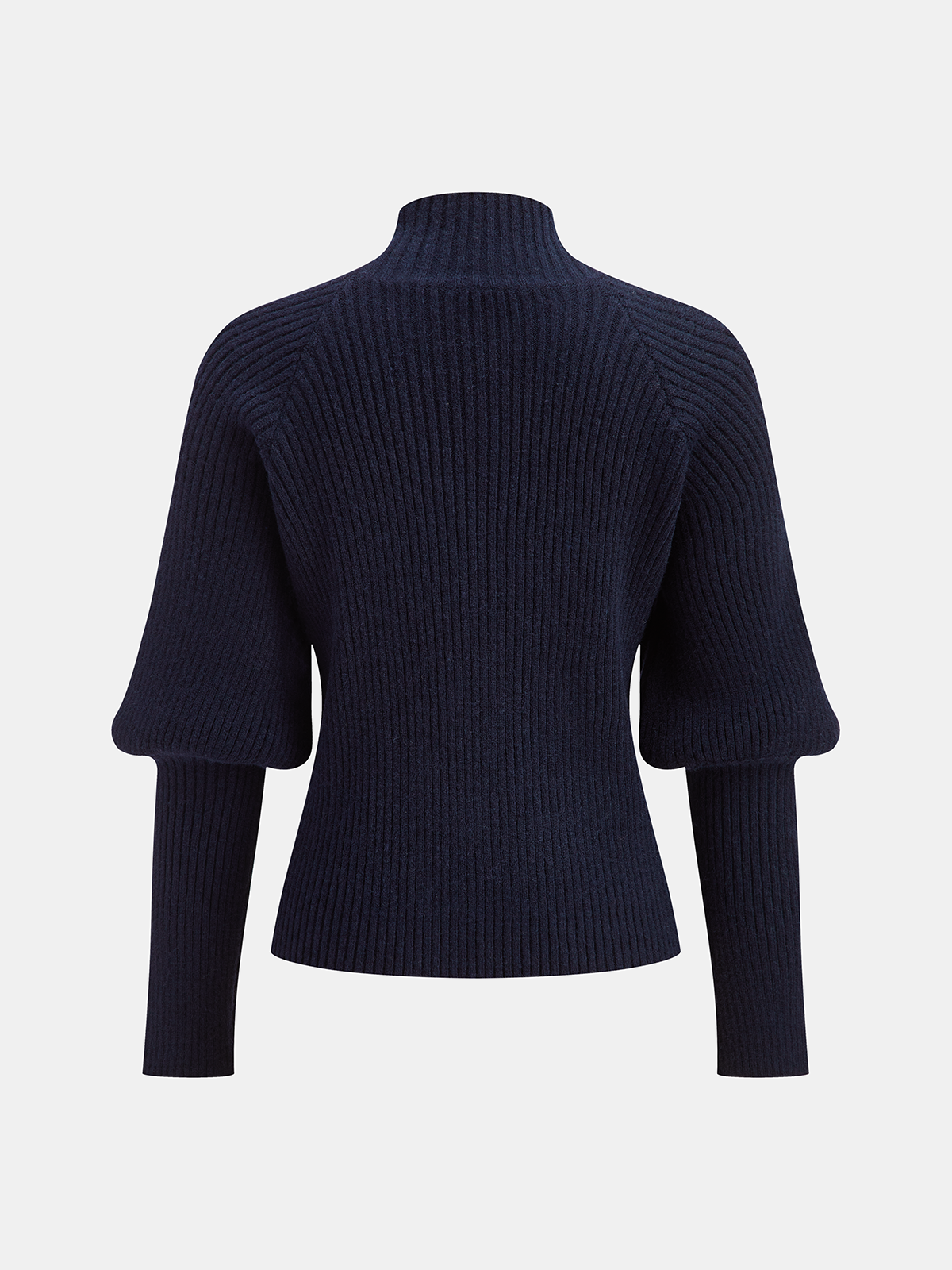 Metal Detail Mock Neck Puff Sleeve Sweater
