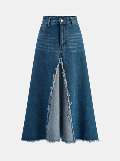 Metal Detail Suede Effect Asymmetric Maxi Skirt