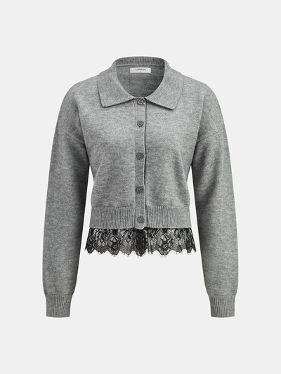 Lace Hem Collared Knit Cardigan