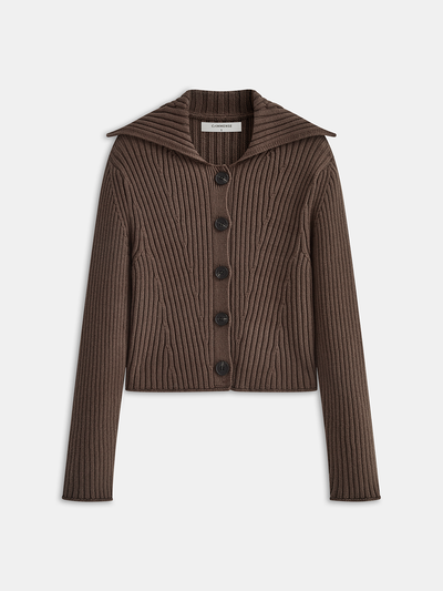 Shawl Collar Button Ribbed Cardigan