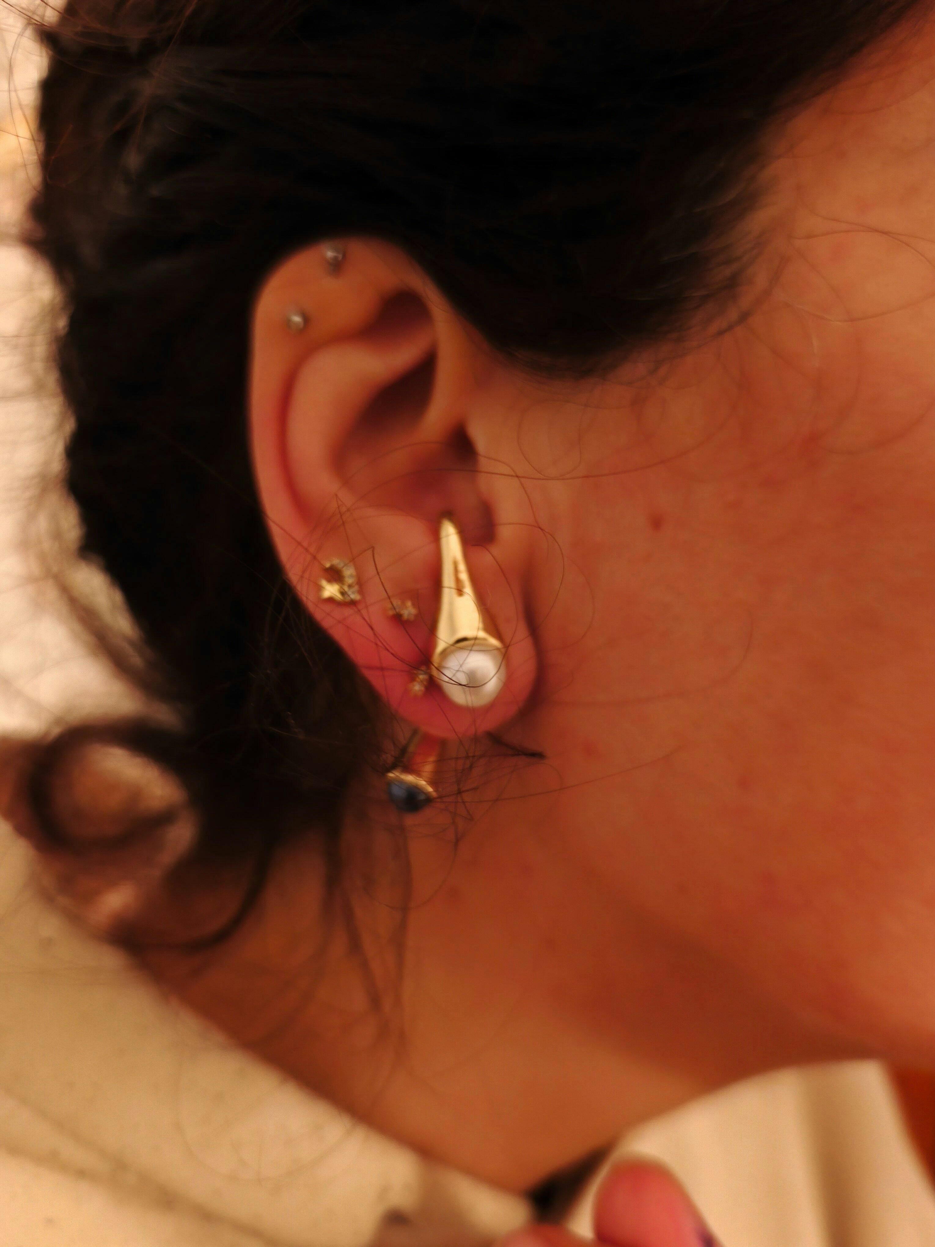 Nice pair of earrings but does not sit well on ear. The “hook” is loose - so it tends to shift off your ear. The item is quite heavy. U can feel the weight on ur ear.