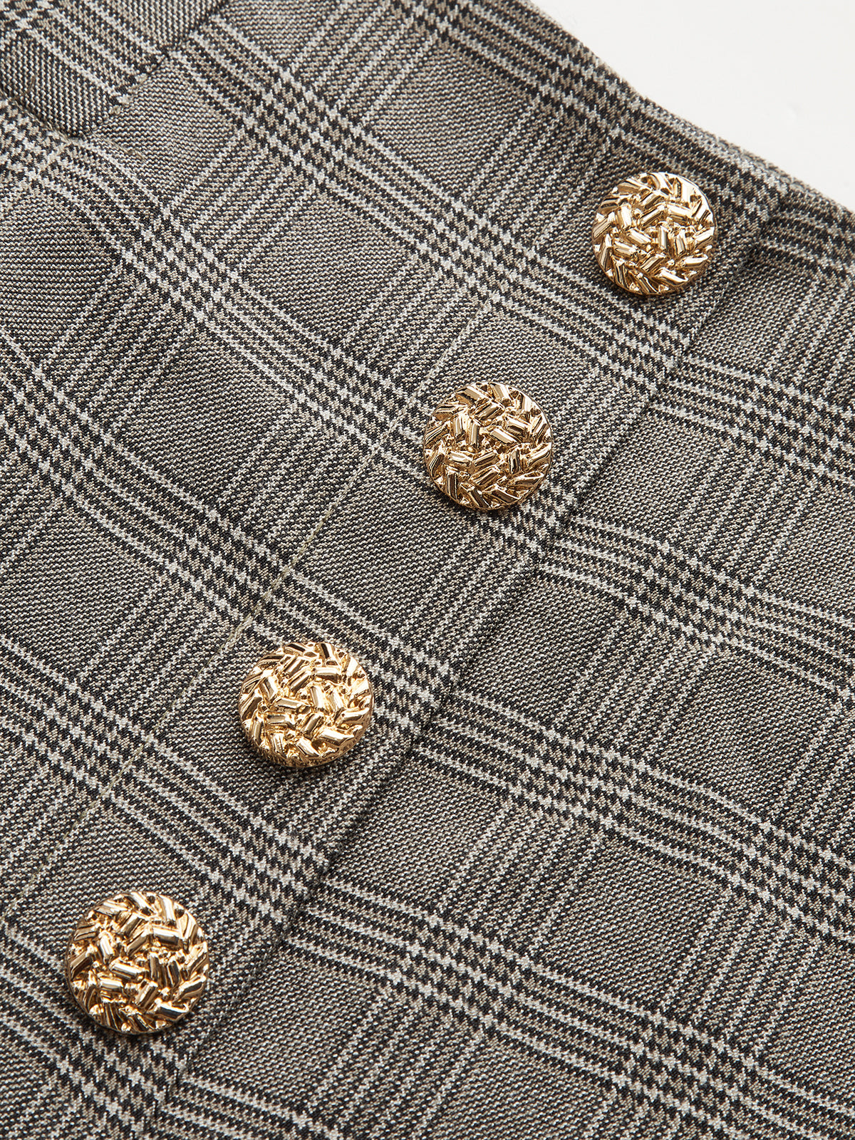 High-Waist Button Detail Plaid Wide-Leg Pants