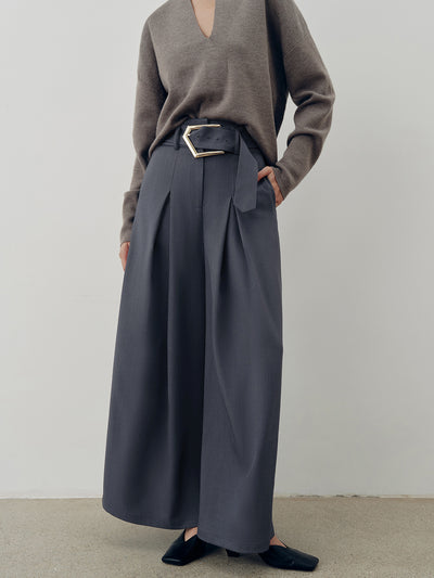 Shirt Dress and Pinstripe Slit Skirt Two-Piece Set