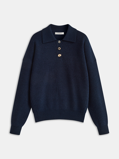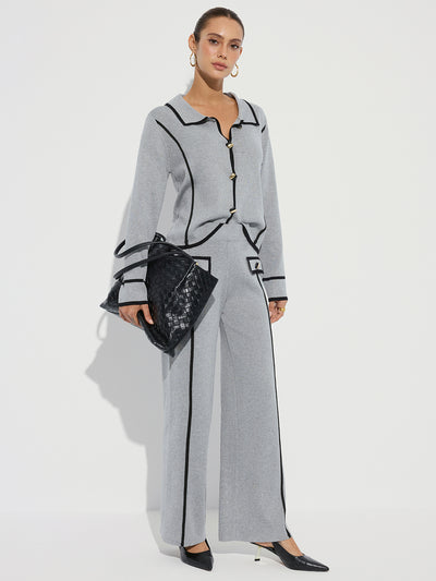 Button-Front Crew Neck Ribbed Knit Cardigan