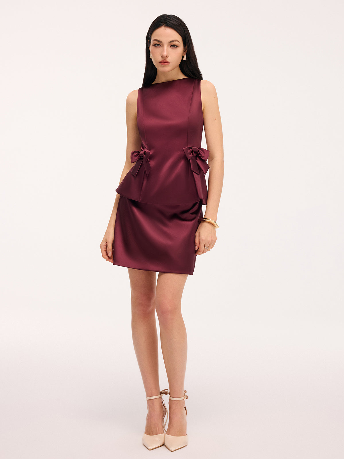 bow,burgundy,clothing,coll:matching_sets,coll:skirts,coll:trending,corpcore,date,feminine,in_six_month,invisible zipper,mwt,non-stretch,not_low_sales,oa251126087,peplum,photo_model,regular,regular fit,satin,season of love,sets,skirt sets,summer hues,women