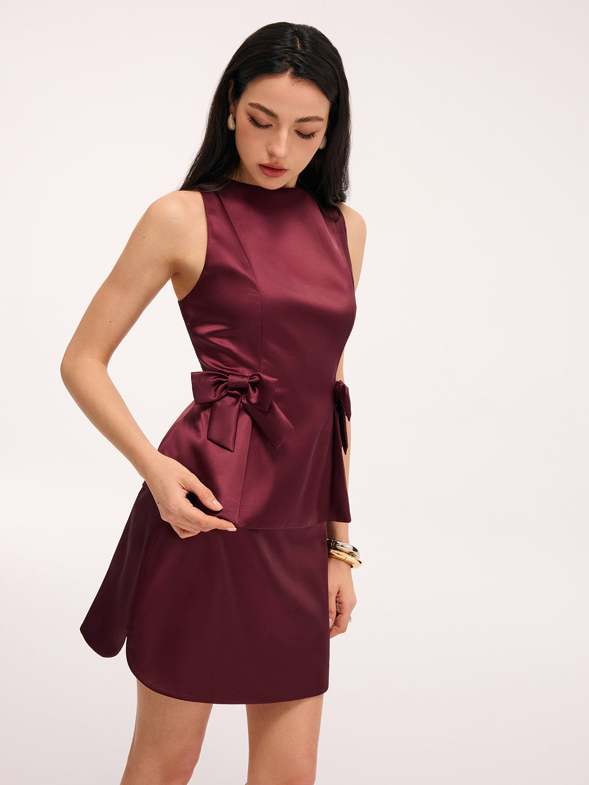 Sleeveless Bow Peplum Top & Mini Skirt Set