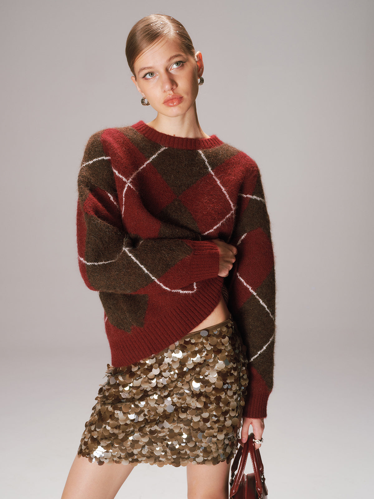 2‌5 christmas,casual,cathryn-t,cici select,clothing,coll:knitwear,coll:plaids_polka,coll:sweater_tops,coll:sweaters_cardigans,coll:tops,coll:trending,dark brown,date,fall,high stretch,in_six_month,inner sample,knit,knit tops,long sleeve,minegence,no,not_low_sales,oa250919037,photo_model,plaid,regular,regular fit,sweaters & cardigans,winter,winter hues,women