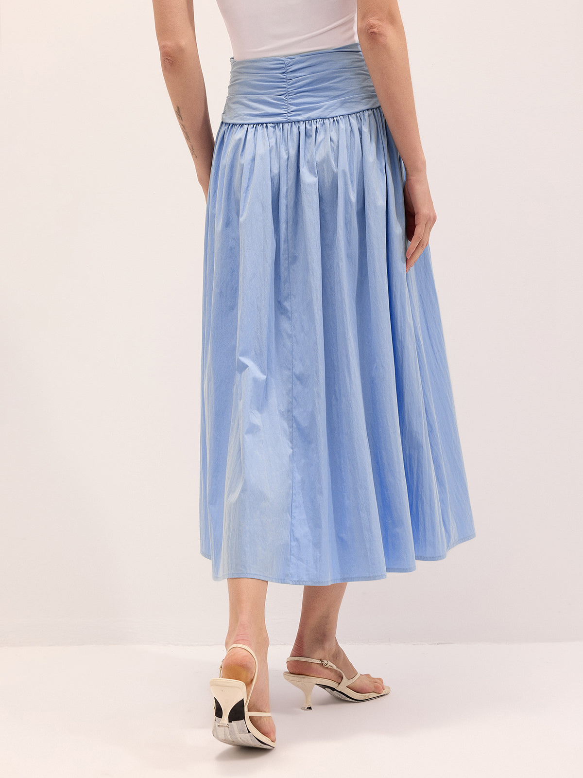 blue,bottoms,casual,clothing,coll:bottoms,coll:linen_cotton,coll:skirts,cotton blends,in_six_month,invisible zipper,metal detail,mid waist,midi,minegence,no,not_low_sales,oa260109037,photo_model,pleated,regular,shift,skirts,slight stretch,summer hues,the linen ease,women