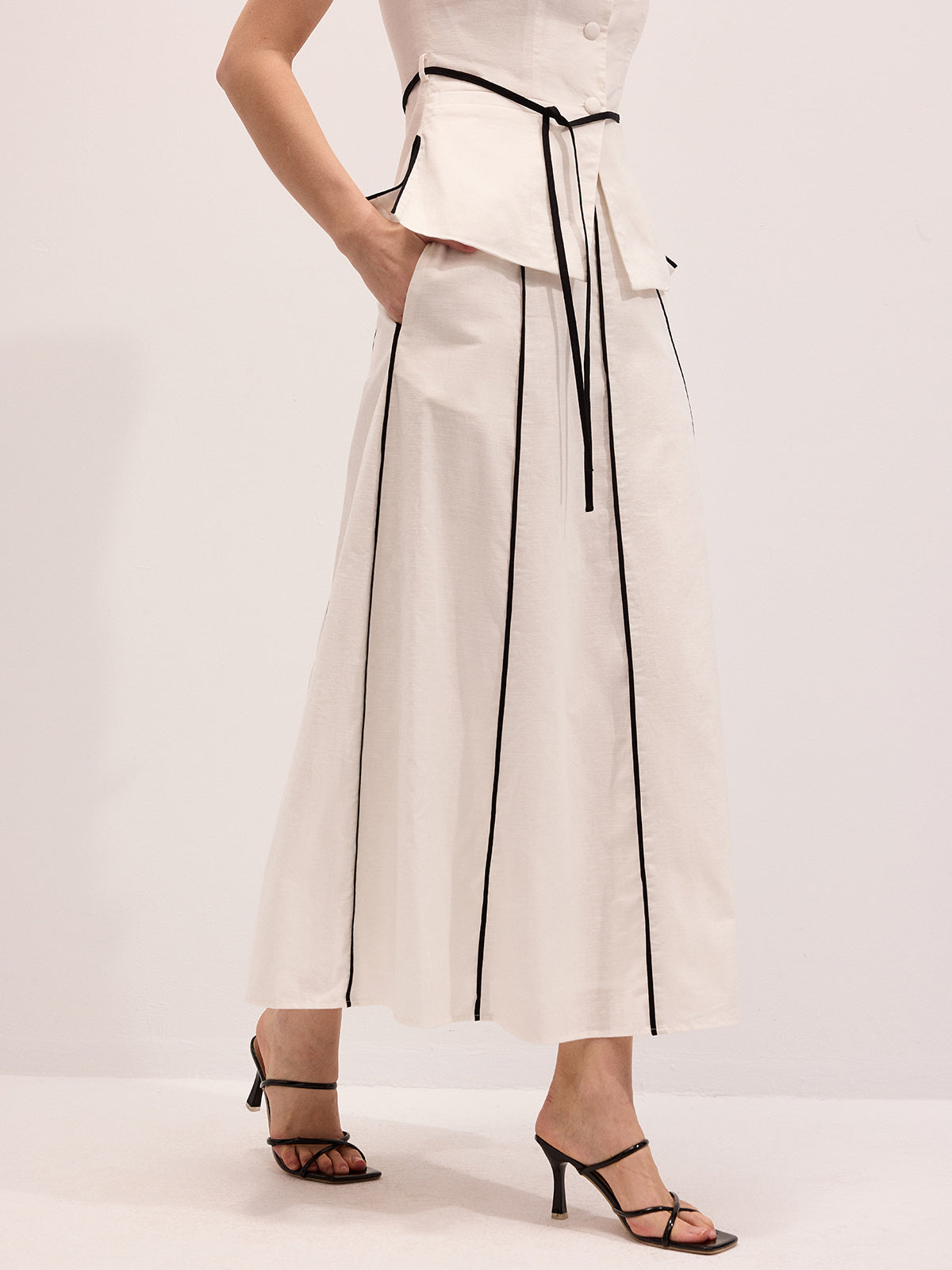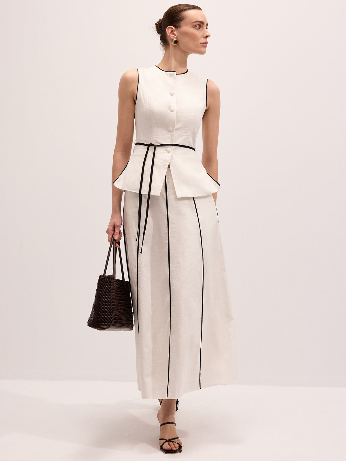Cotton Linen Contrast Piping Top & Maxi Skirt Set