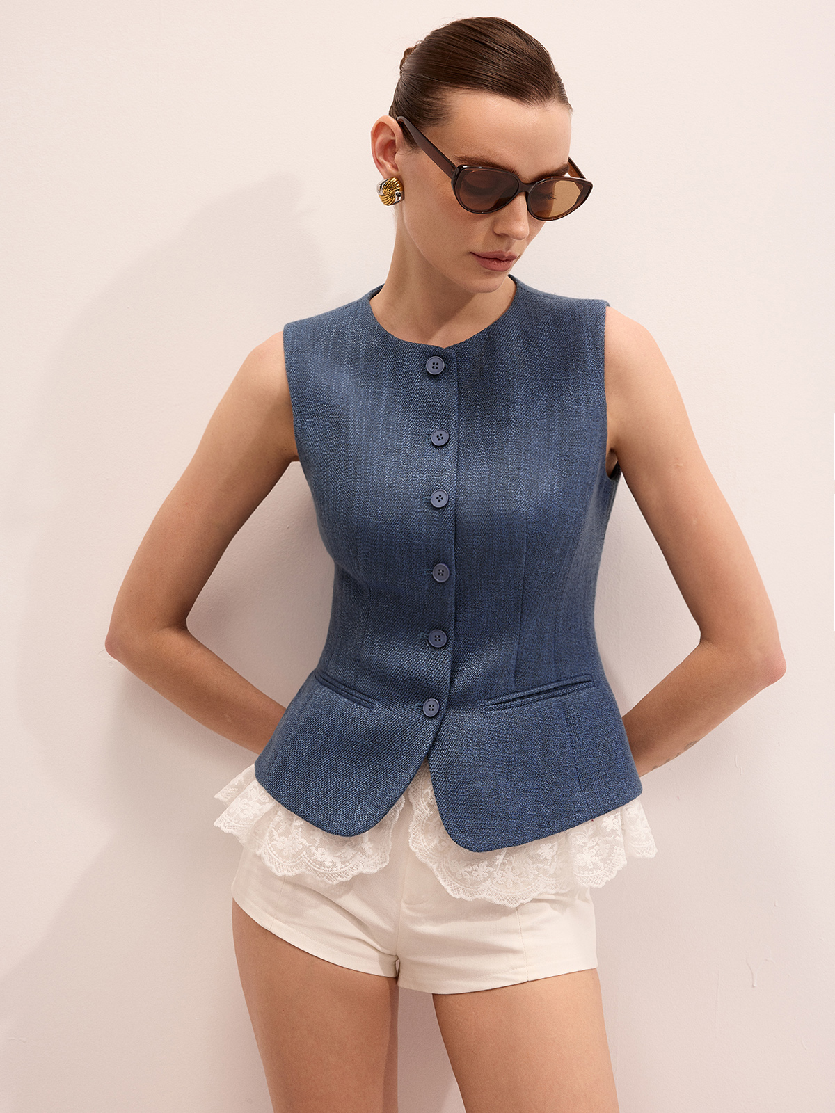 Lace Hem Button Front Slim Vest