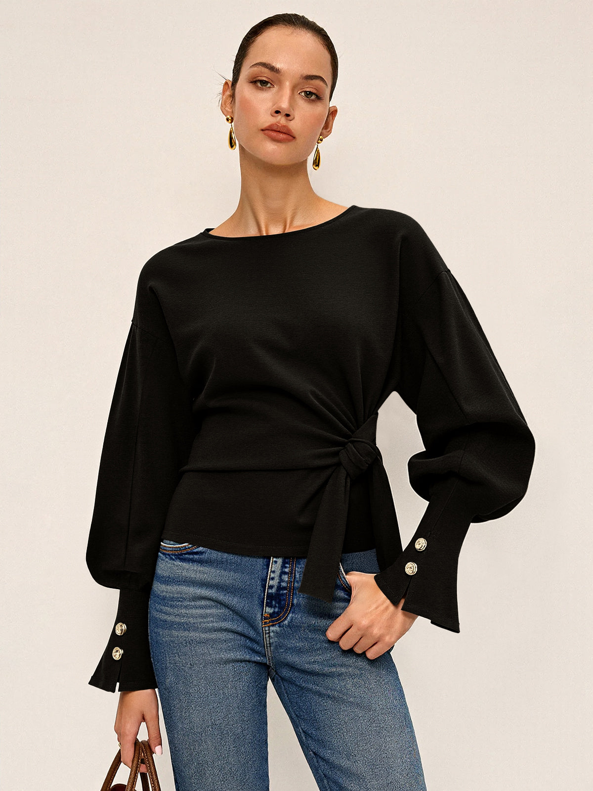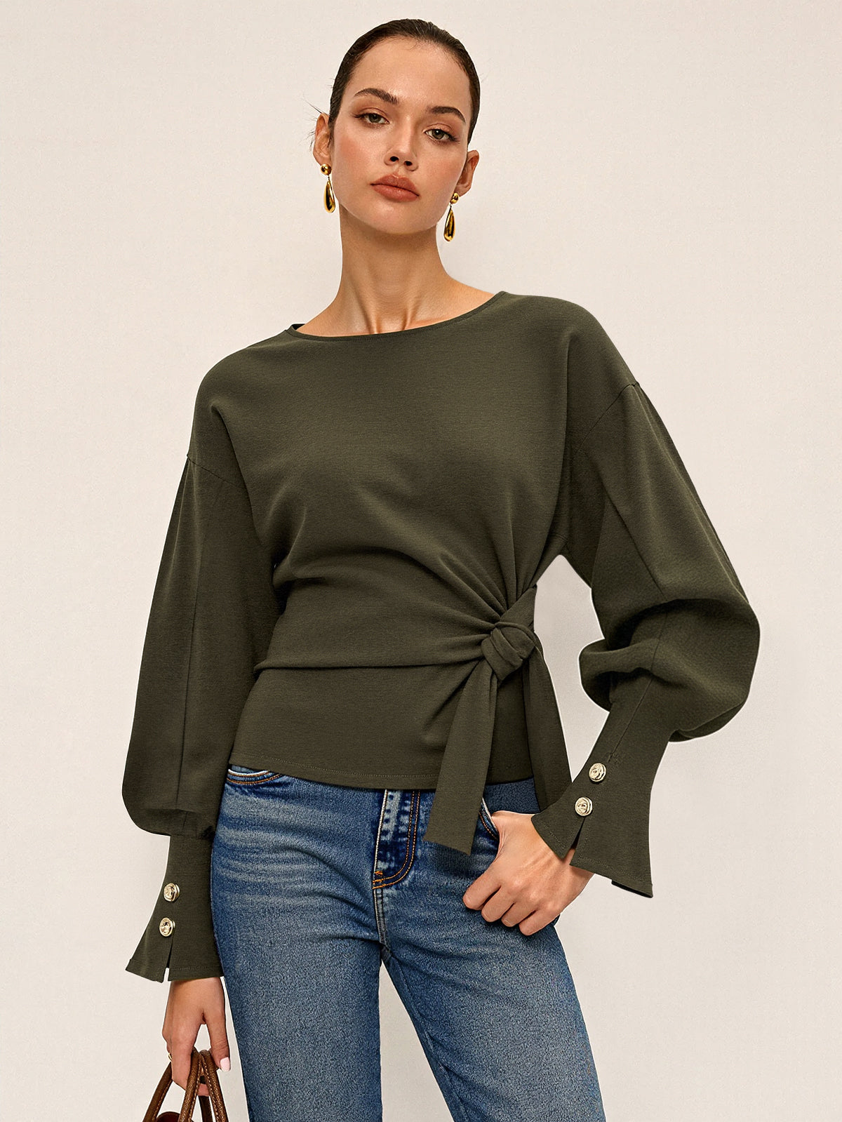 Twist Knot Balloon Sleeve Sweatshirt