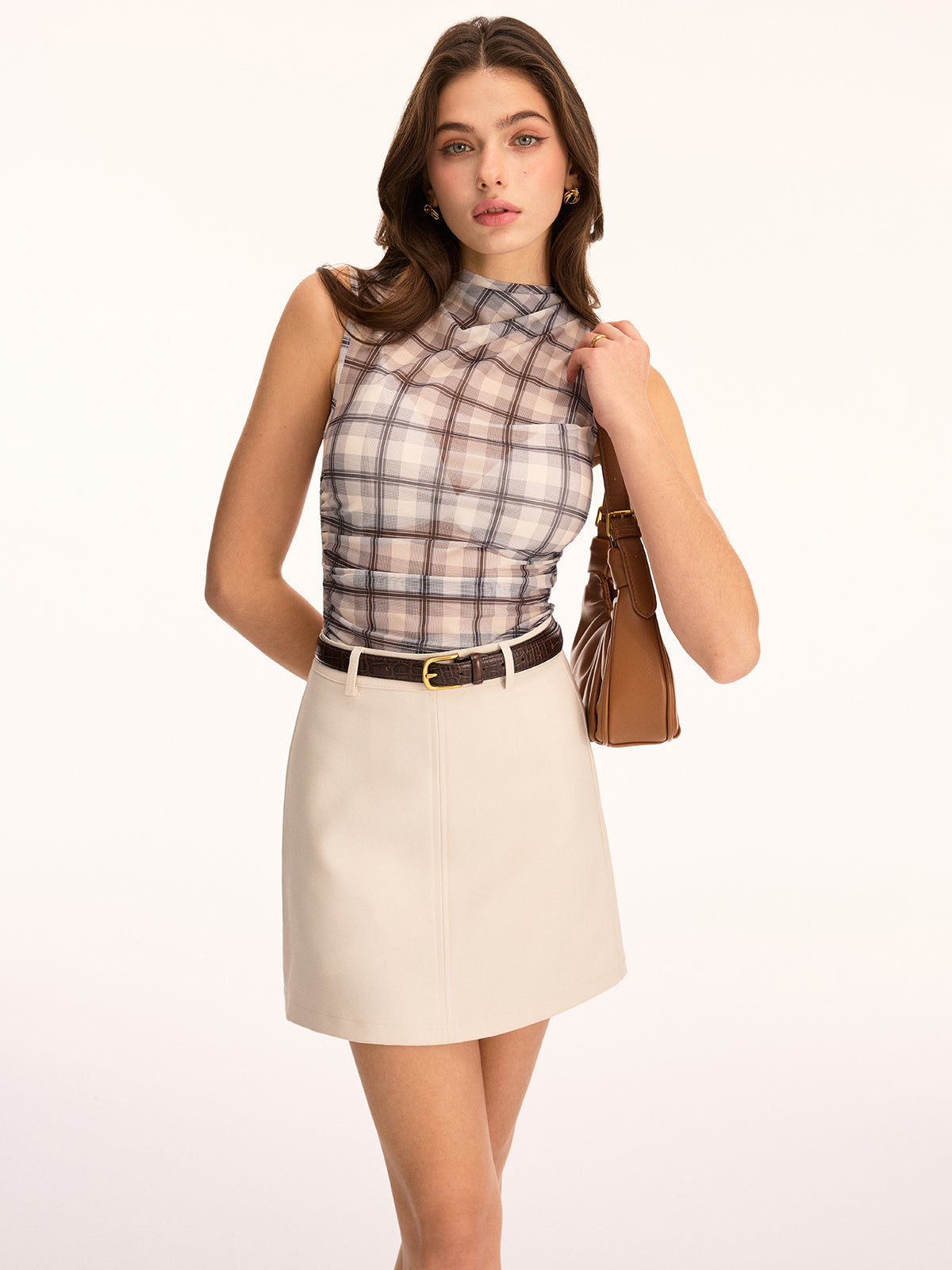 casual,clothing,coll:plaids_polka,coll:tank_tops_camis,coll:tops,corpcore,funnel neck,high stretch,in_six_month,light grey,mesh,minegence,not_low_sales,oa251227057,photo_model,plaid,regular,ruched,sleeveless,slim fit,tank tops & camis,thin,tops,women,yes