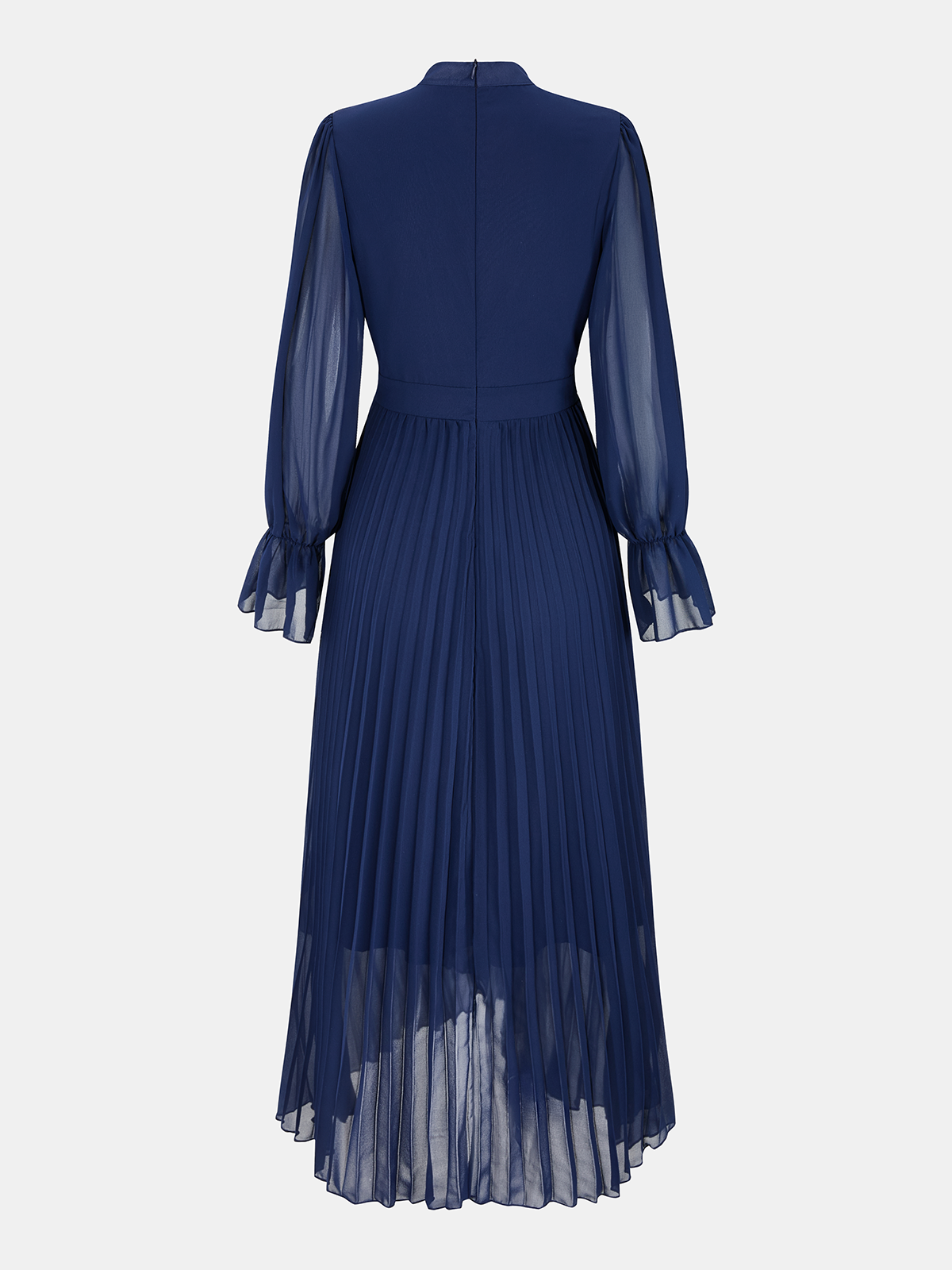 asymmetric,casual,clothing,coll:dresses,coll:sheer_bare-back,date,dresses,in_six_month,long sleeve,maxi,minegence,mock neck,navy,non-stretch,not_low_sales,oa251201051,pleated,regular,regular fit,semi-sheer,sheer,women