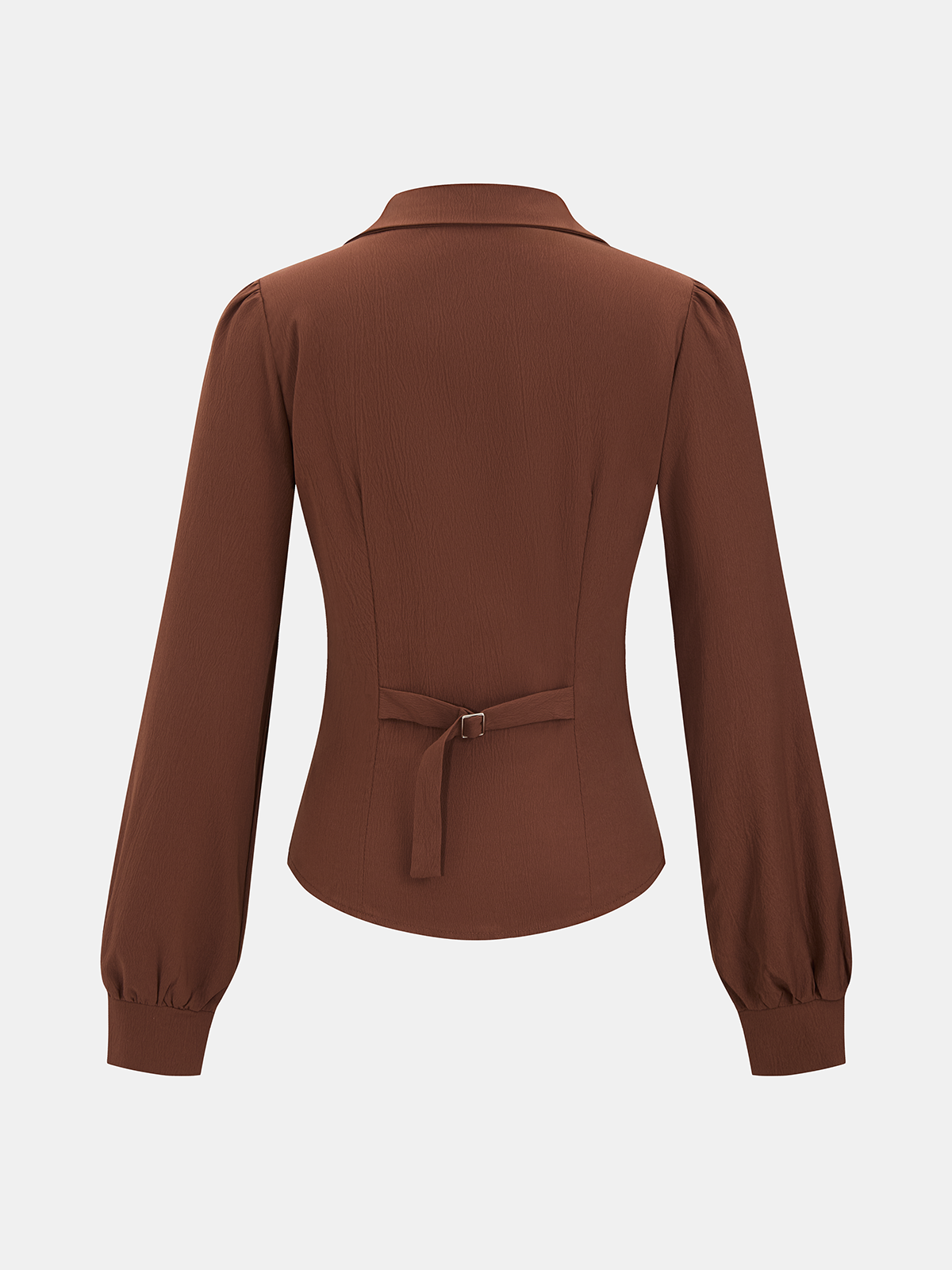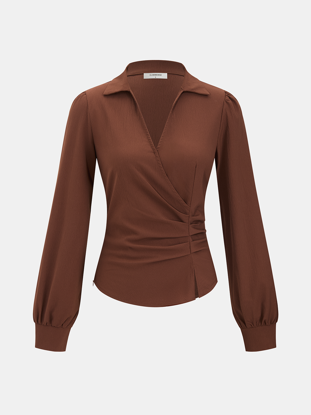casual,clothing,coll:blouses_shirts,coll:tops,corpcore,dark brown,in_six_month,long sleeve,minegence,no,non-stretch,not_low_sales,oa251127062,polo,regular,regular fit,ruched,shirts,tops,winter hues,women,woven fabric