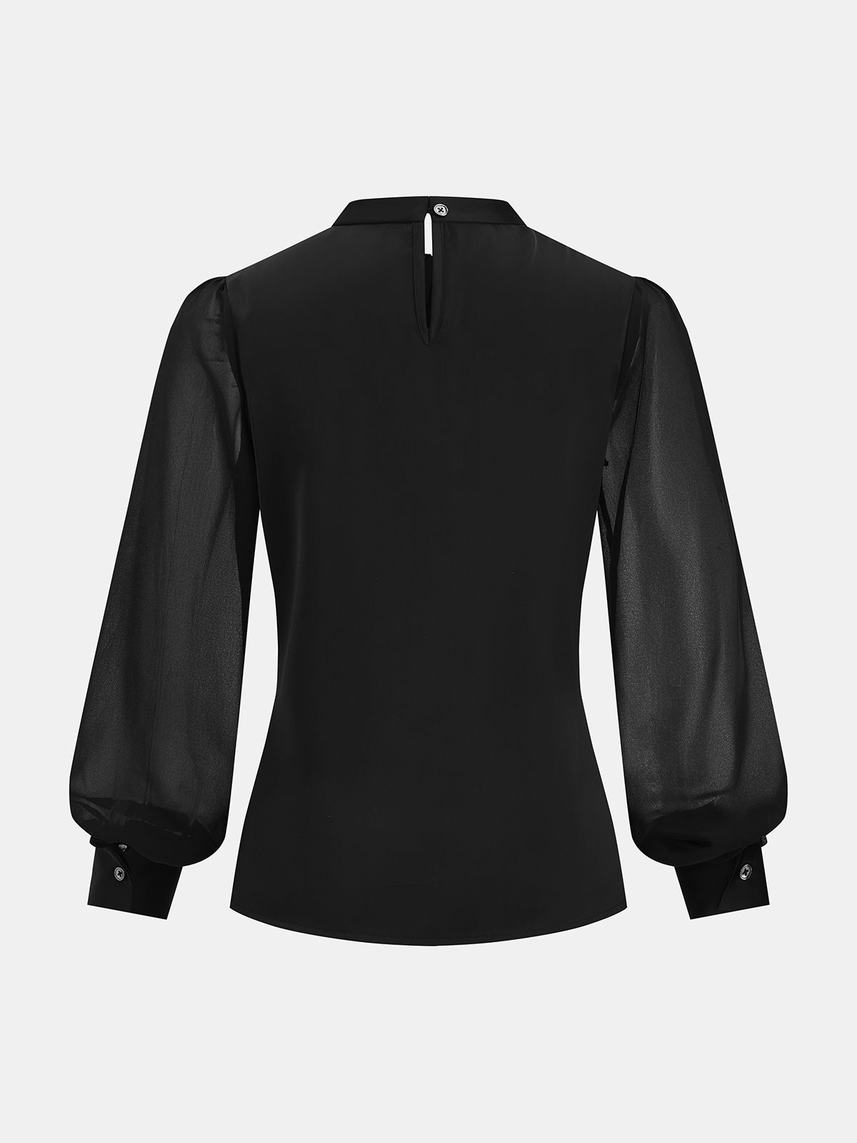 black,casual,clothing,coll:blouses_shirts,coll:sheer_bare-back,coll:tops,corpcore,in_six_month,long sleeve,minegence,mwt,no,non-stretch,not_low_sales,oa251120053,photo_ai,regular,ruched,satin,sheer,shift,shirts,stand collar,tops,women
