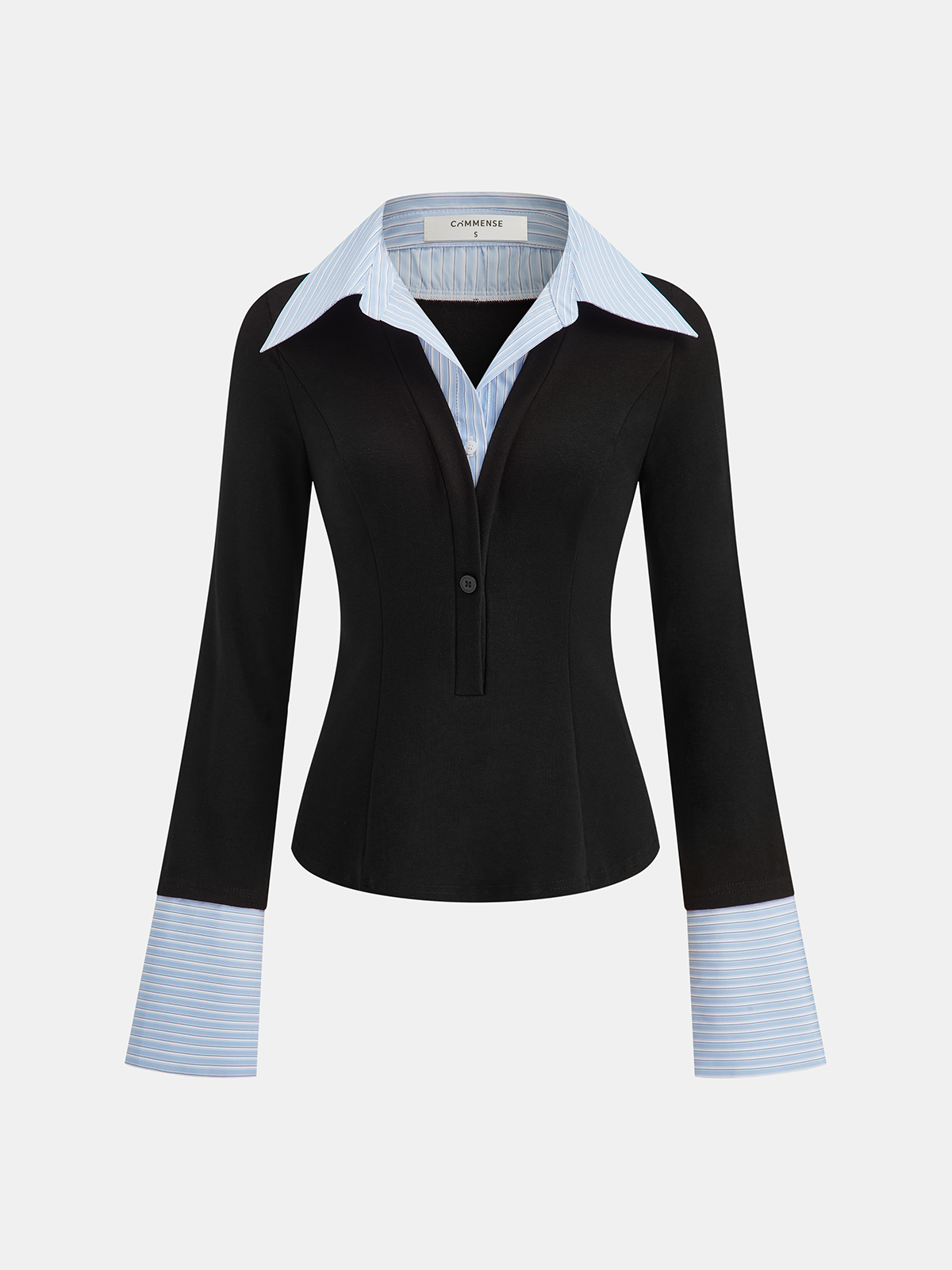 Mock Two-Piece Long-Sleeve Two Tone Polo Top
