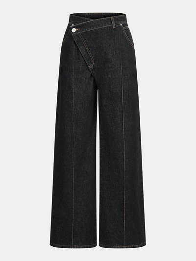 Asymmetric Mid-Waist Wide-Leg Jeans