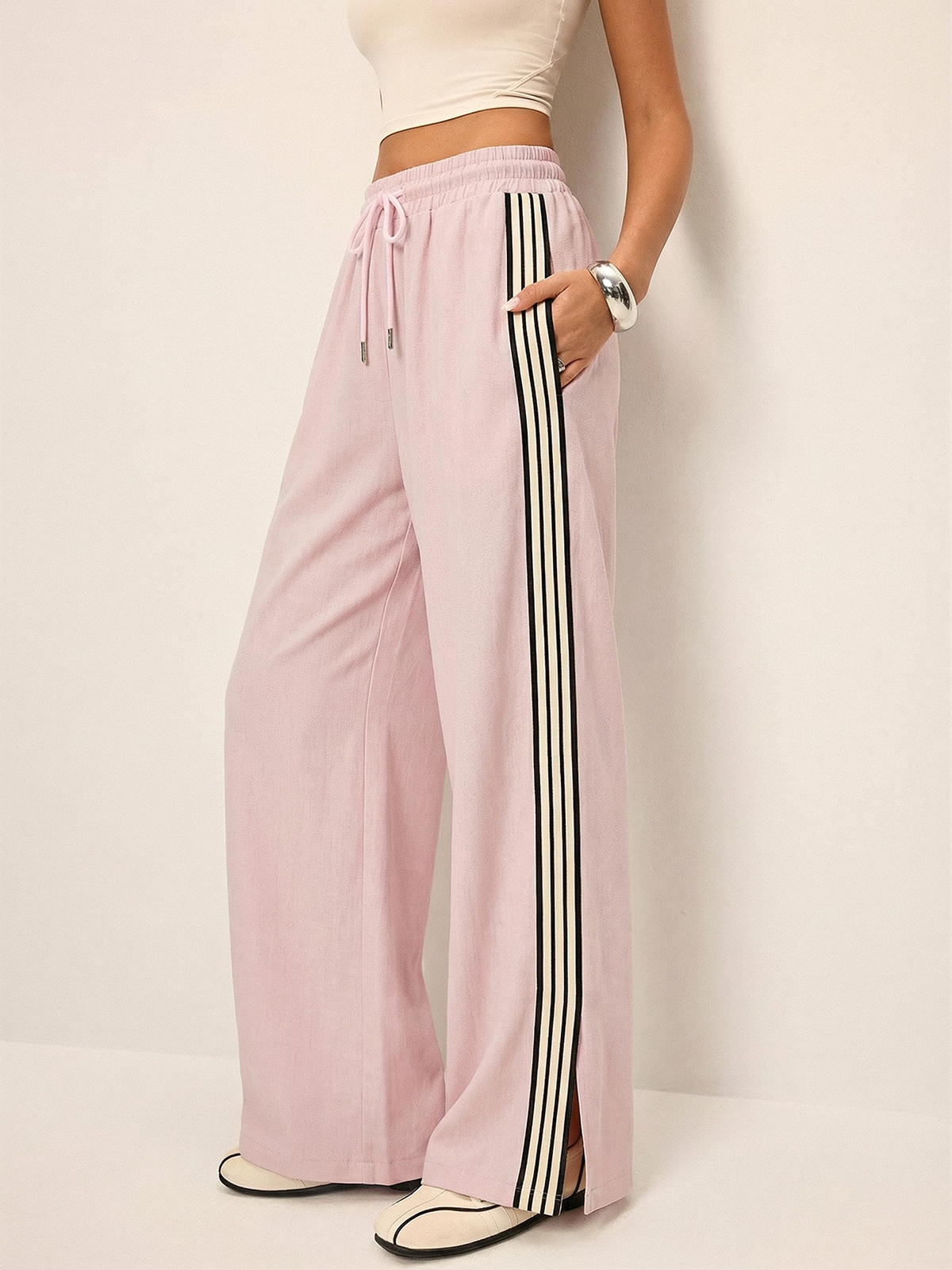 bottoms,casual,clothing,coll:bottoms,coll:linen_cotton,coll:pants,coll:trending,contrast piping / trim,cotton&linen,elastic waistband,in_six_month,khaki,long pants,mid waist,minegence,no,not_low_sales,oa260224014,pants,photo_ai,pink,regular,regular fit,slight stretch,stripe,women