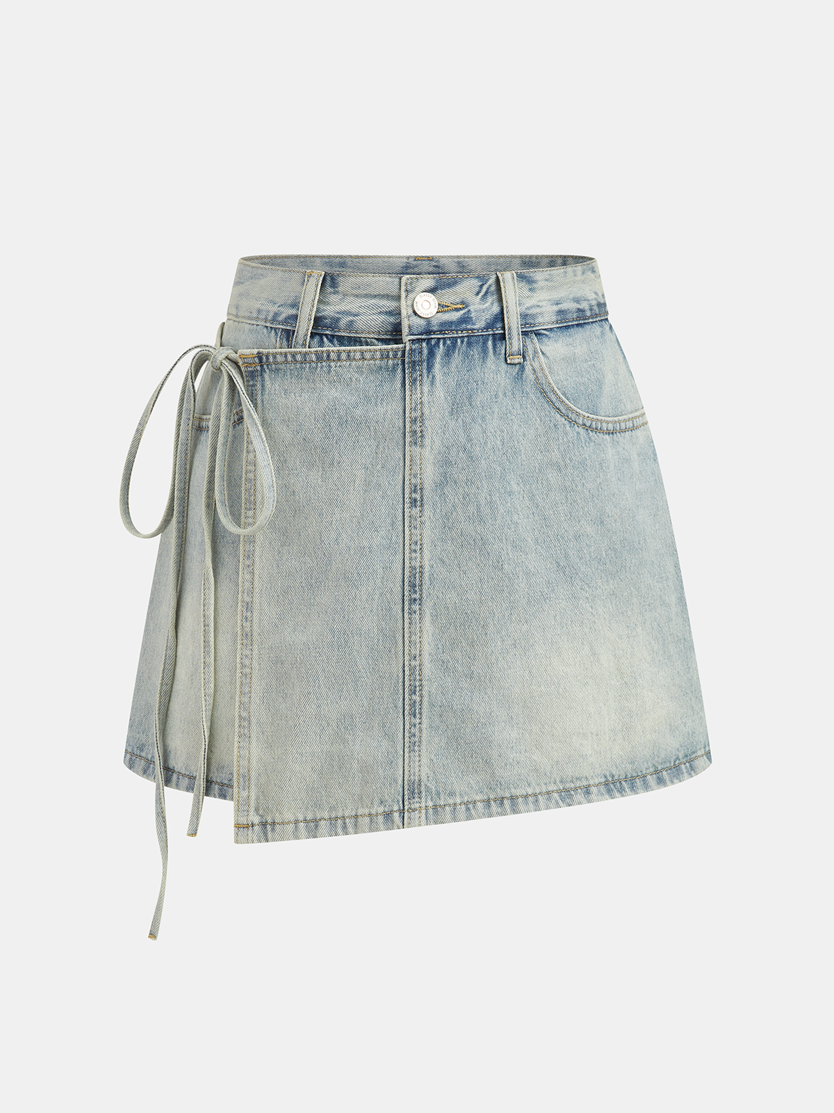 asymmetric,bottoms,bow,casual,clothing,coll:bottoms,coll:denim,coll:shorts,cross wrap,date,denim,in_six_month,lightblue,mid waist,minegence,no,non-stretch,not_low_sales,oa251219030,regular,regular fit,shorts,women