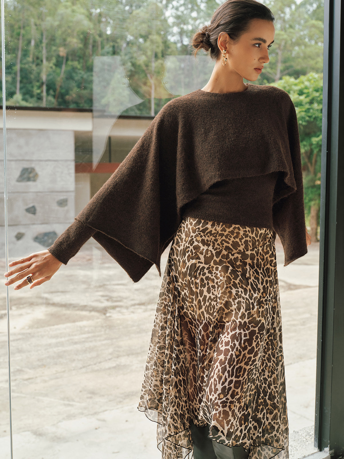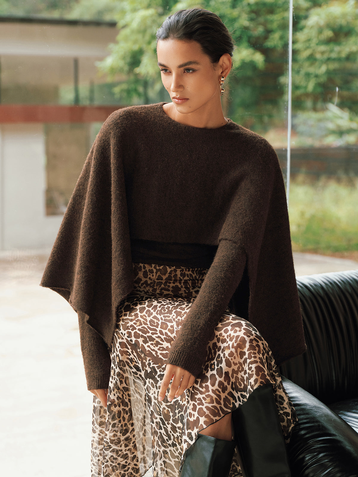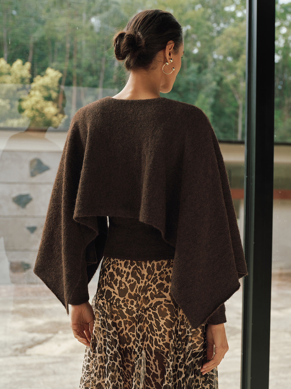 Wool-Blend Capelet-Sleeve Knit Top